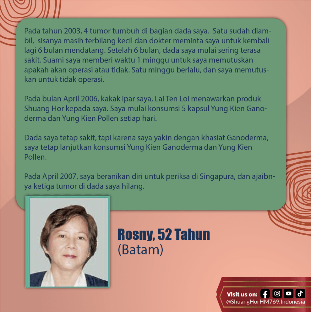 Meskipun telah pulih 100%, mereka masih mengonsumis Ganoderma untuk menjaga kesehatan dan kebugaran tubuh.